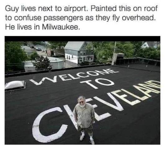In 1978, Mark Gubin painted “Welcome to Cleveland” on the roof of his Bay View building as a joke for planes passing over on their way to Mitchell International Airport. Despite its age, the sign went viral online in 2015, bringing Gubin renewed notoriety.